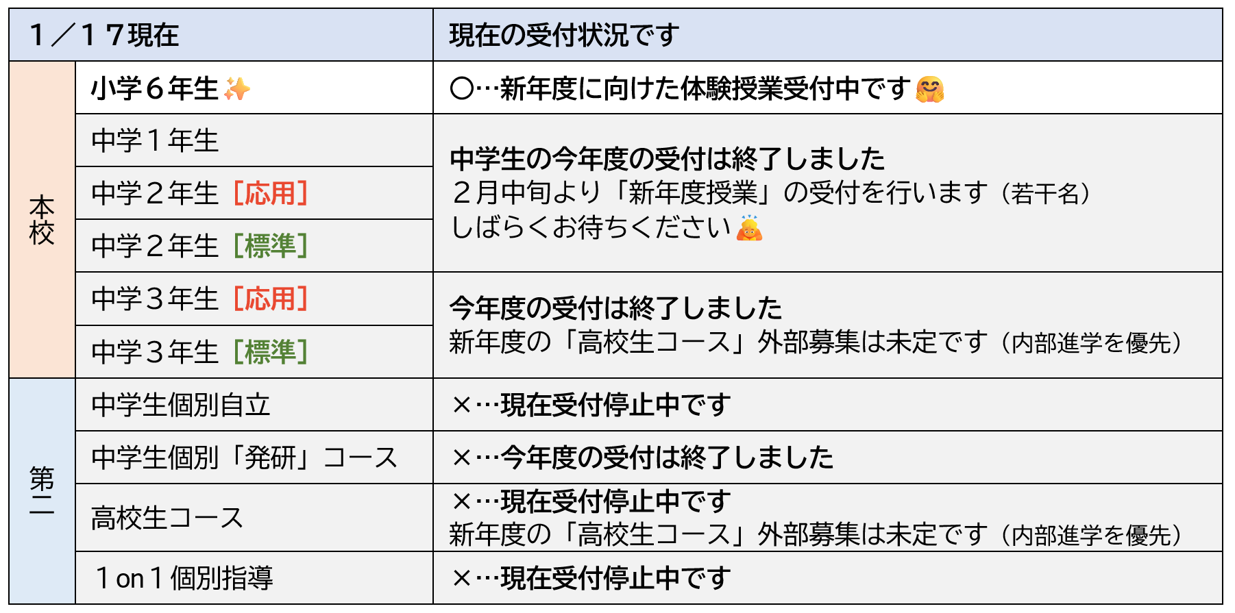 [お願い]体験授業はフォーム、メールから受け付けています。